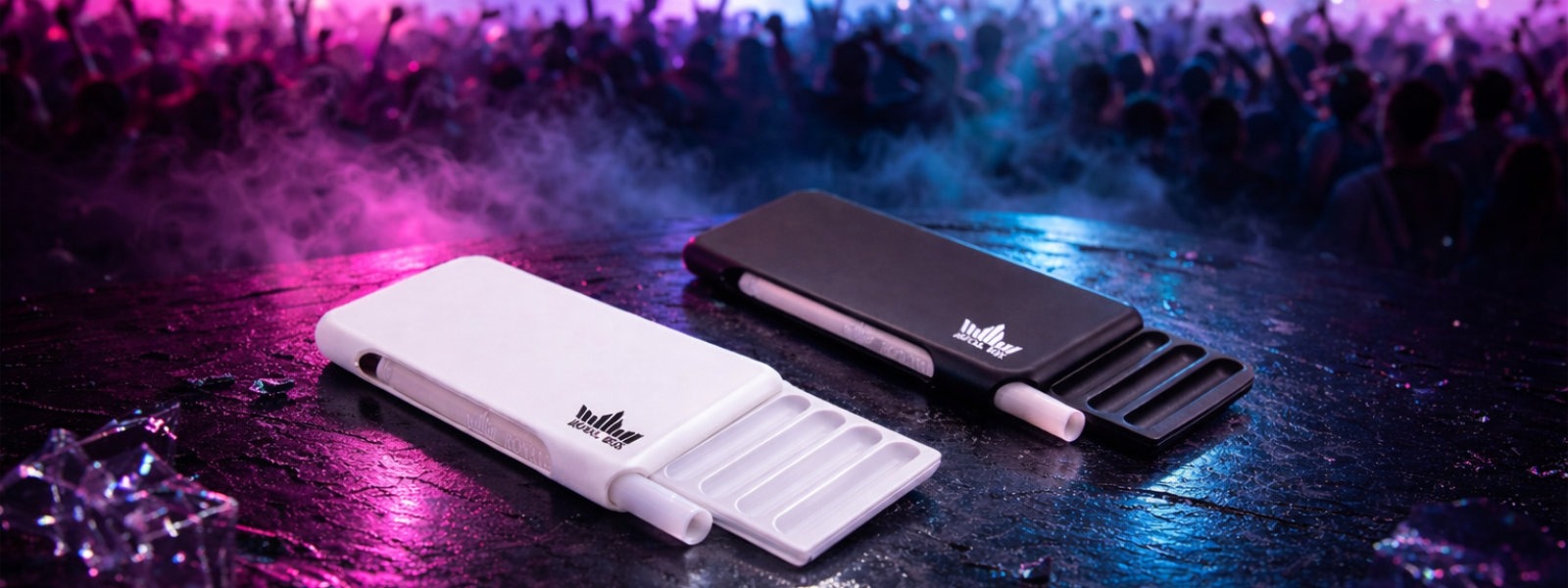 Baller-Fläschchen mit Teleskoplöffel – Klar mit schwarzem Deckel